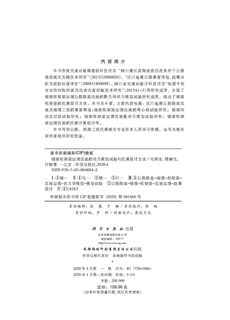 现货锚索框架梁加固边坡 社9787030646842 动力模型试验与抗震设计方法马洪生胡卸文付晓著科学出版
