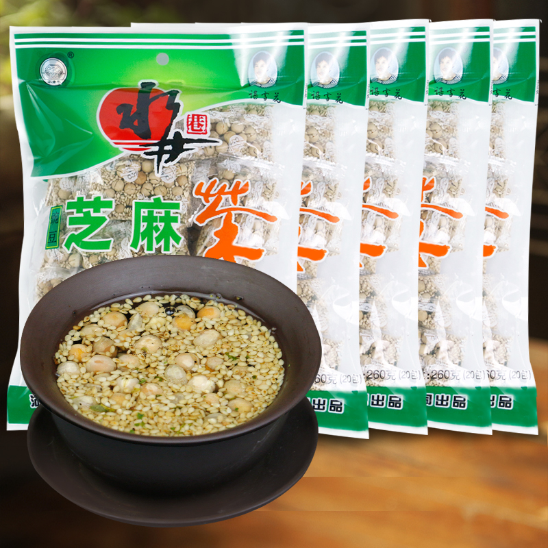 湖南安化水井巷豌豆芝麻茶260gX5袋装 芝麻豆子姜盐茶黄豆擂茶代餐