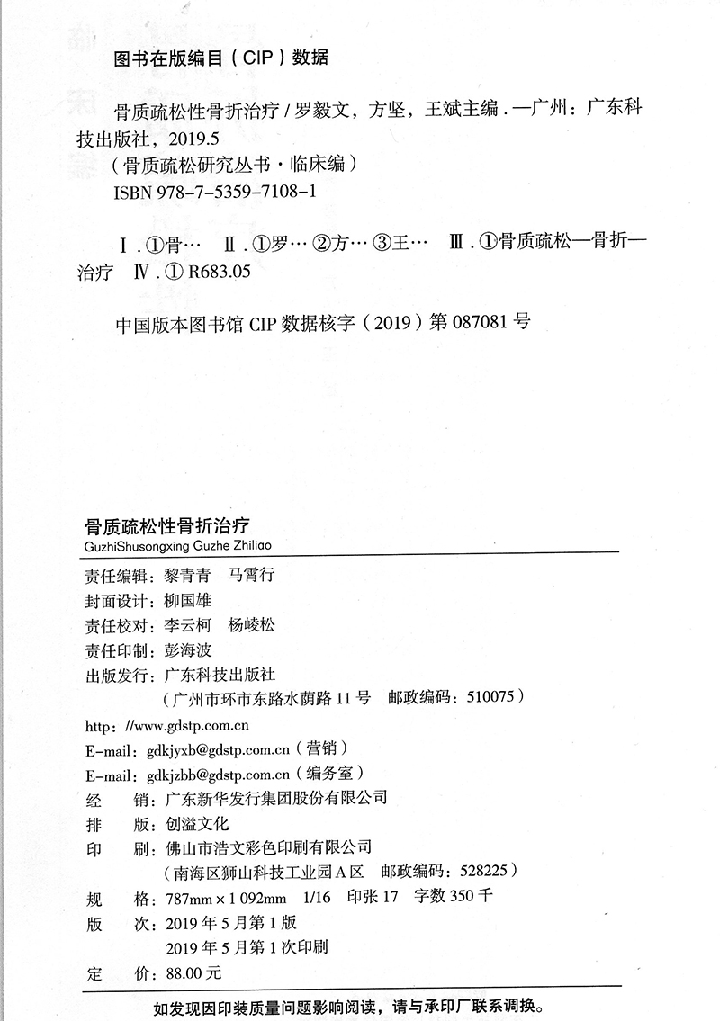 主编罗毅文 骨质疏松研究丛书 方坚 王斌 社9787535971081 现货 广东科学技术出版 骨质疏松性骨折治疗