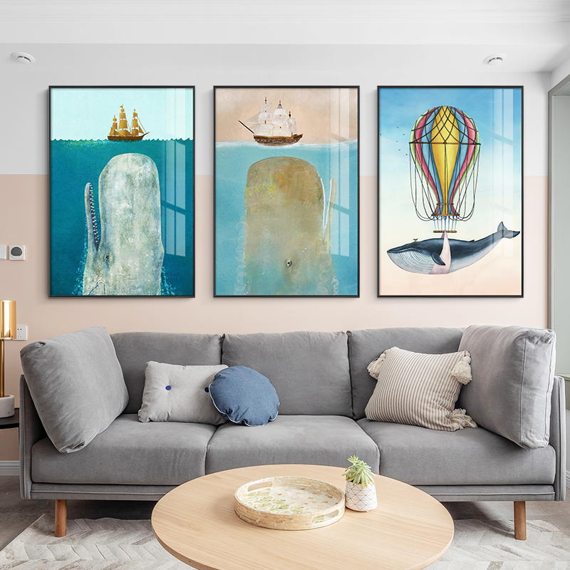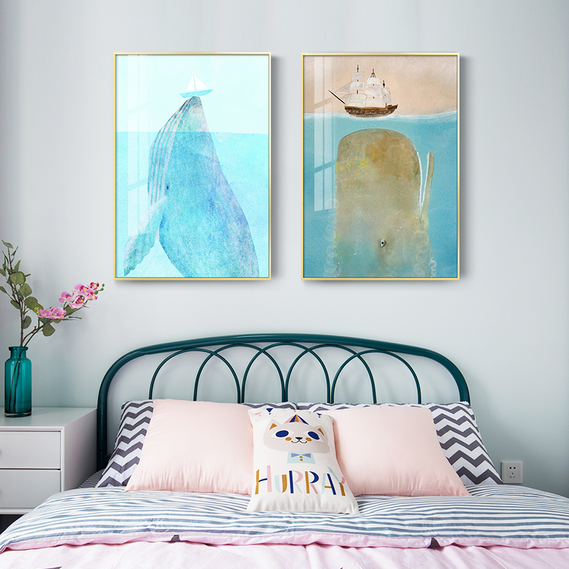 盈浩儿童房装 饰画男孩女孩床头墙面现代简约卡通蓝鲸动物卧室挂画