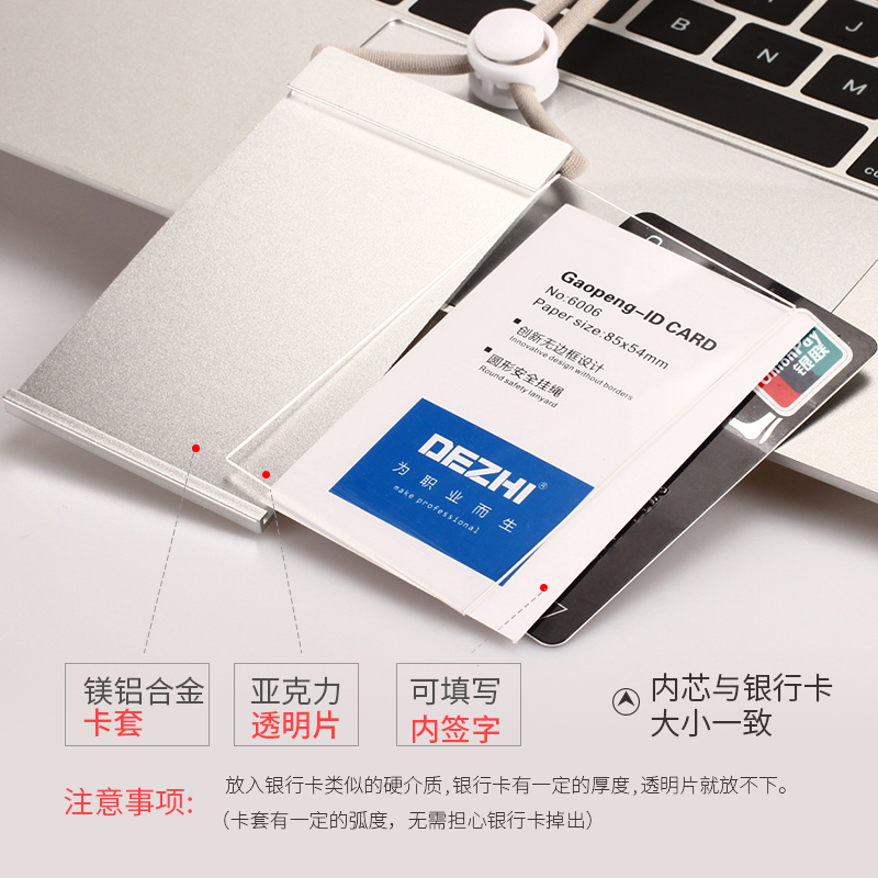 一体式 创意无边框铝合金工牌金属证件卡套胸牌带挂工作证件员工工号牌公司胸牌人像卡校卡门禁胸卡套工作牌套