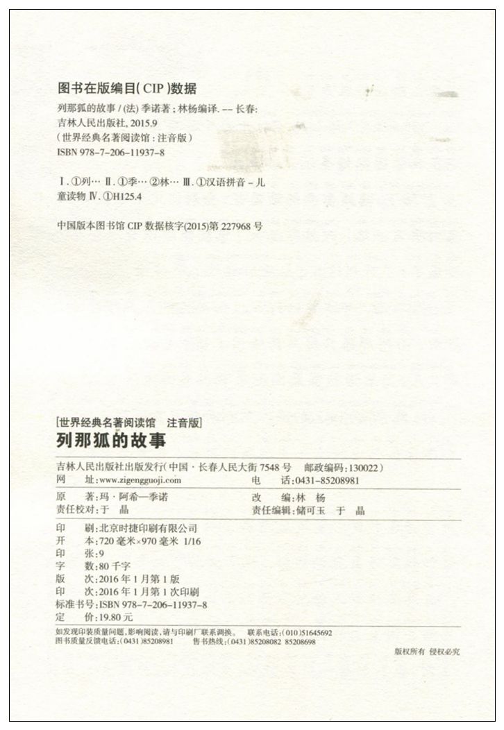 彩图注音版 故事 世界经典 名著阅读馆 少儿文学国外名著书籍 正版 低年级阅读名师经典 列那狐