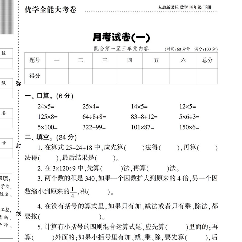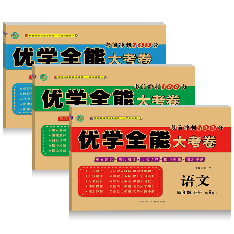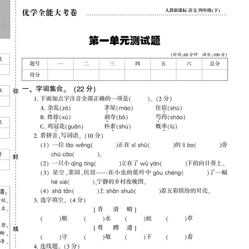 期中期末测试卷题考试卷子 小学四年级下册语文数学书同步训练单元 2025春 优学全能大考卷四年级下册试卷语文数学英语全套3本人教版