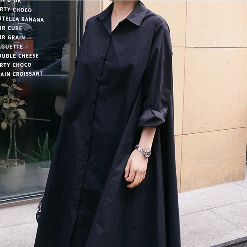 深蓝色软牛仔衬衫 上衣 女秋冬不卷边时髦叠穿衬衣宽松复古港风长袖
