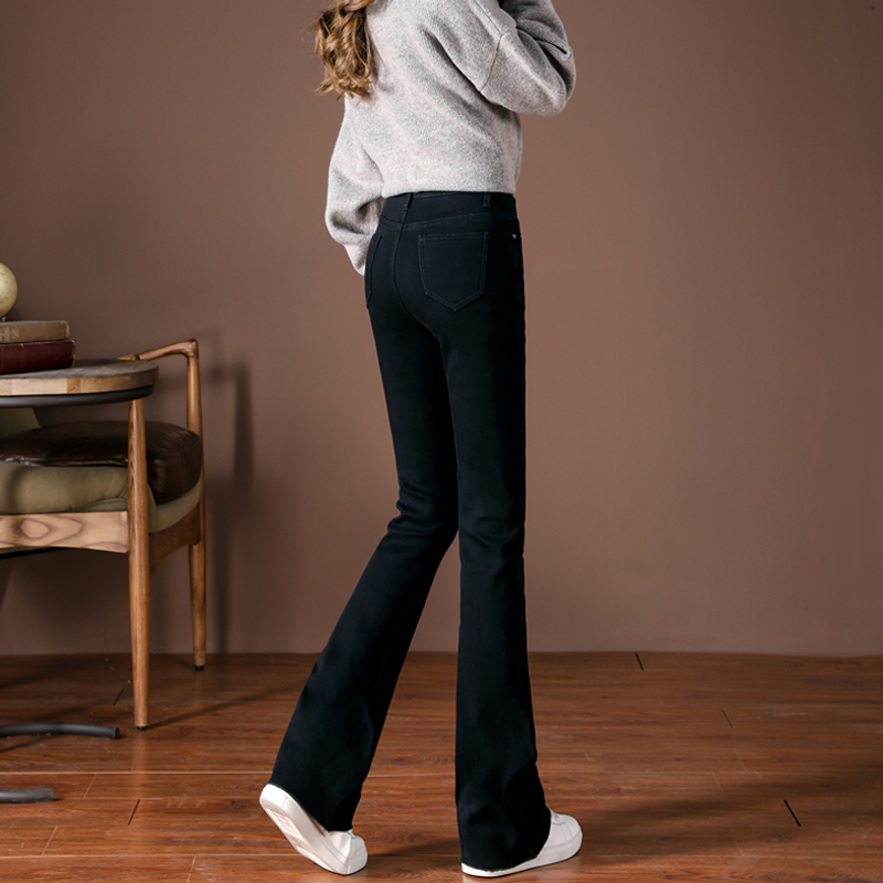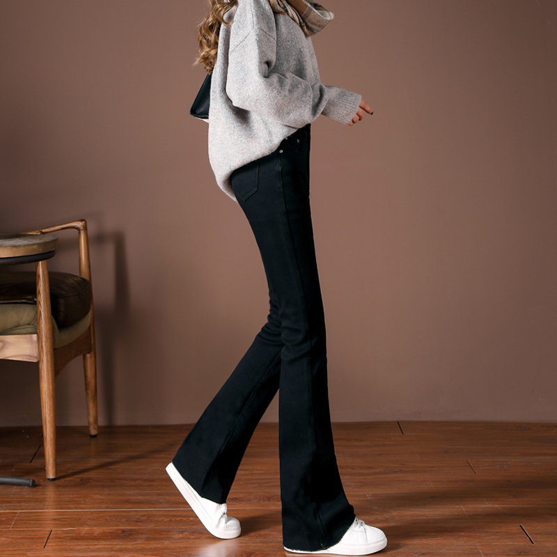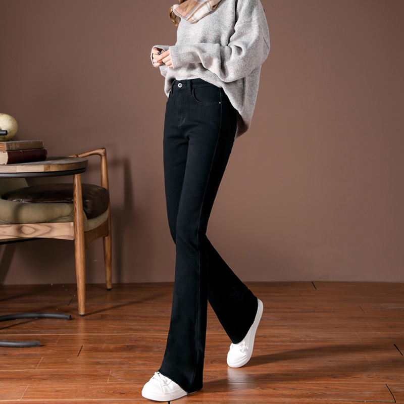 长裤 高腰微喇叭裤 加厚毛边 女2025秋冬新款 加绒黑色弹力喇叭牛仔裤