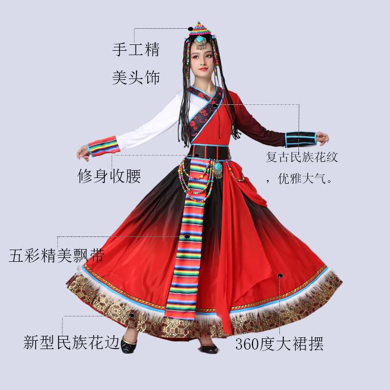 2025新款 女少数民族服饰成人卓玛大摆裙中国风 藏族舞蹈表演出服装