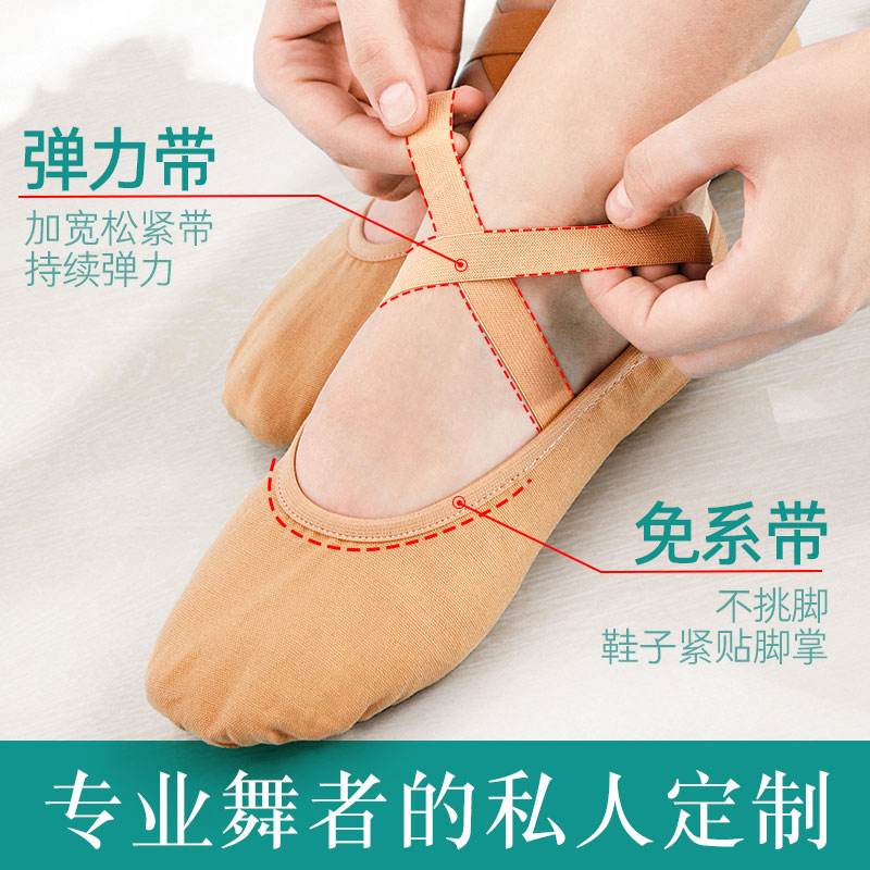 舞蹈鞋 儿童女软底女童练功肉色粉免系带专用中国跳舞猫爪芭蕾新款