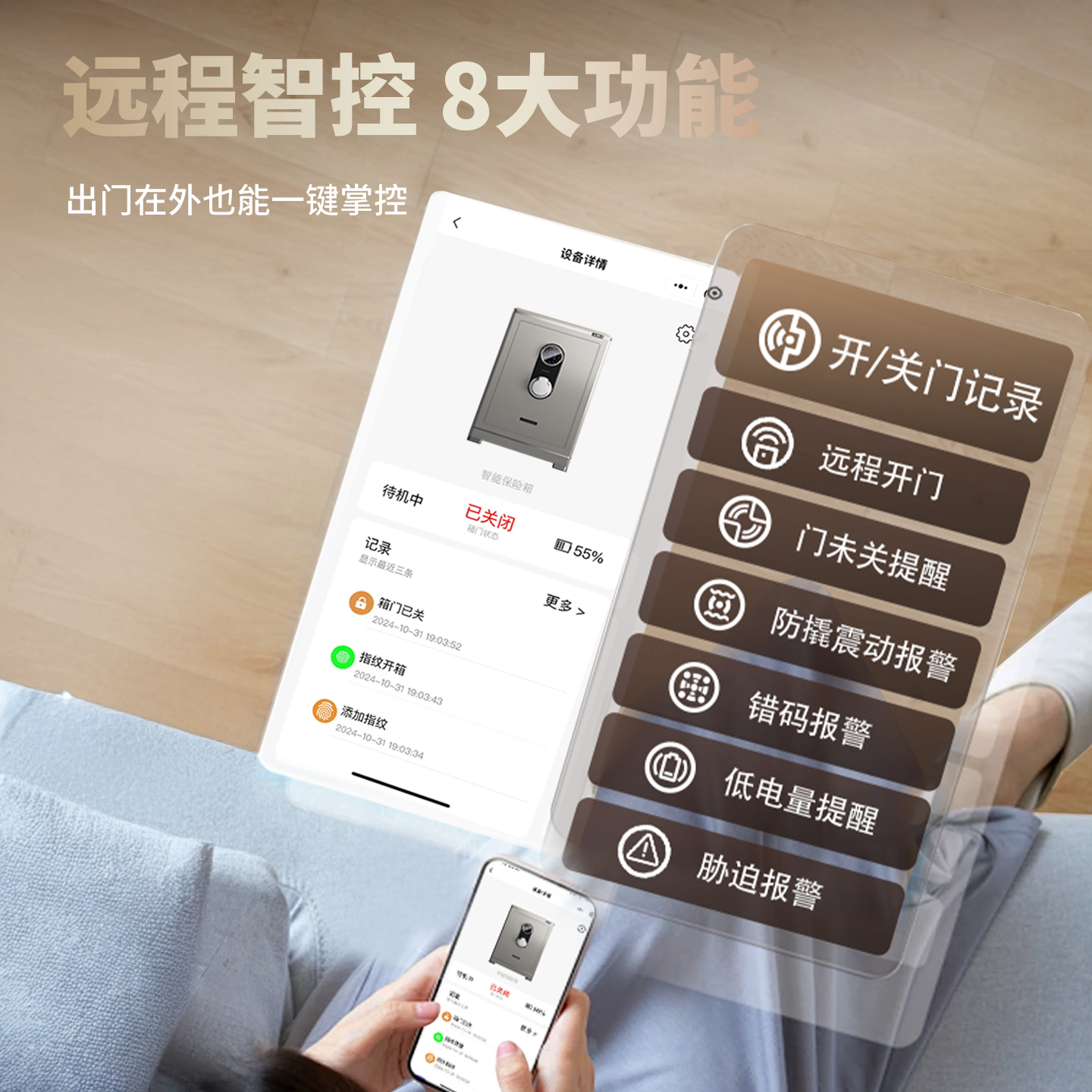 虎牌保险柜 升级 家用小型45 WiFi手机智能控制防盗办公床头80保管箱搬不动2025年 70cm指纹保险箱 新款
