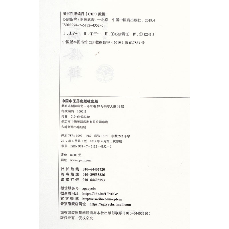 王辉武 社 心病条辨 中国中医药出版