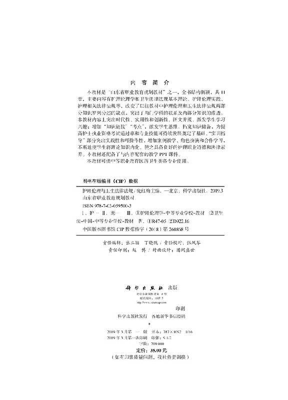 科学出版 中职护理 社 山东版 护理伦理与卫生法律法规