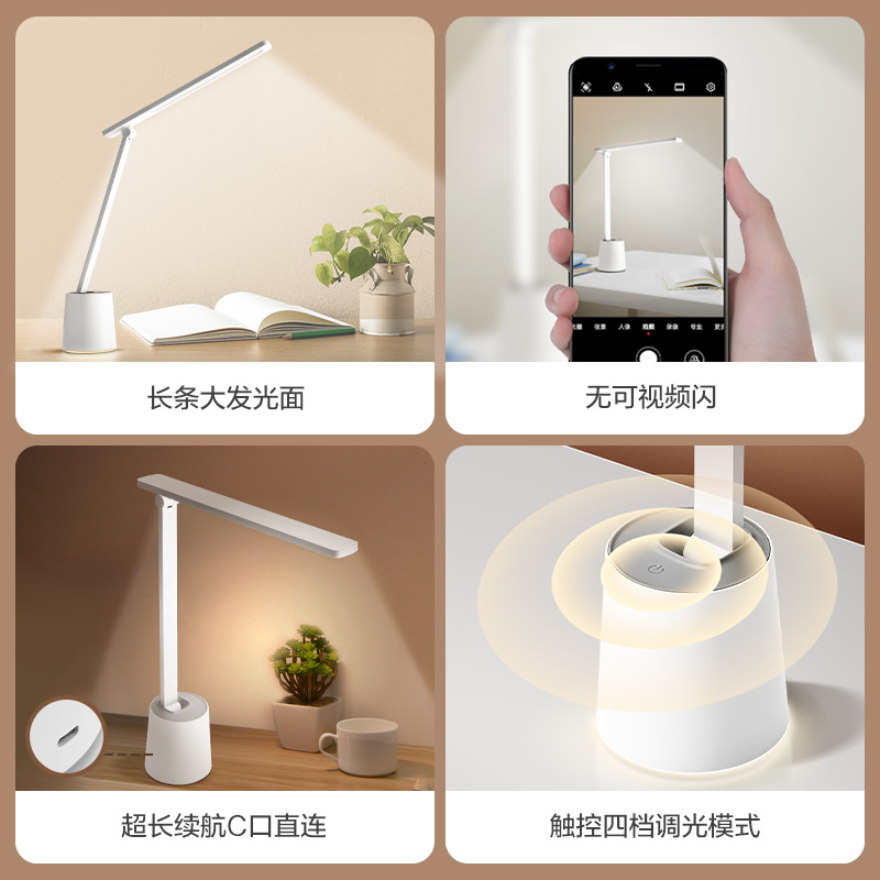 欧普充插两用护眼灯书桌学生宿舍充电便携长续航LED专业读写台灯