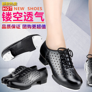 少儿软底踢踏舞蹈鞋 春季 成人男女儿童款 广场舞鞋 系带 镂空踢踏舞鞋