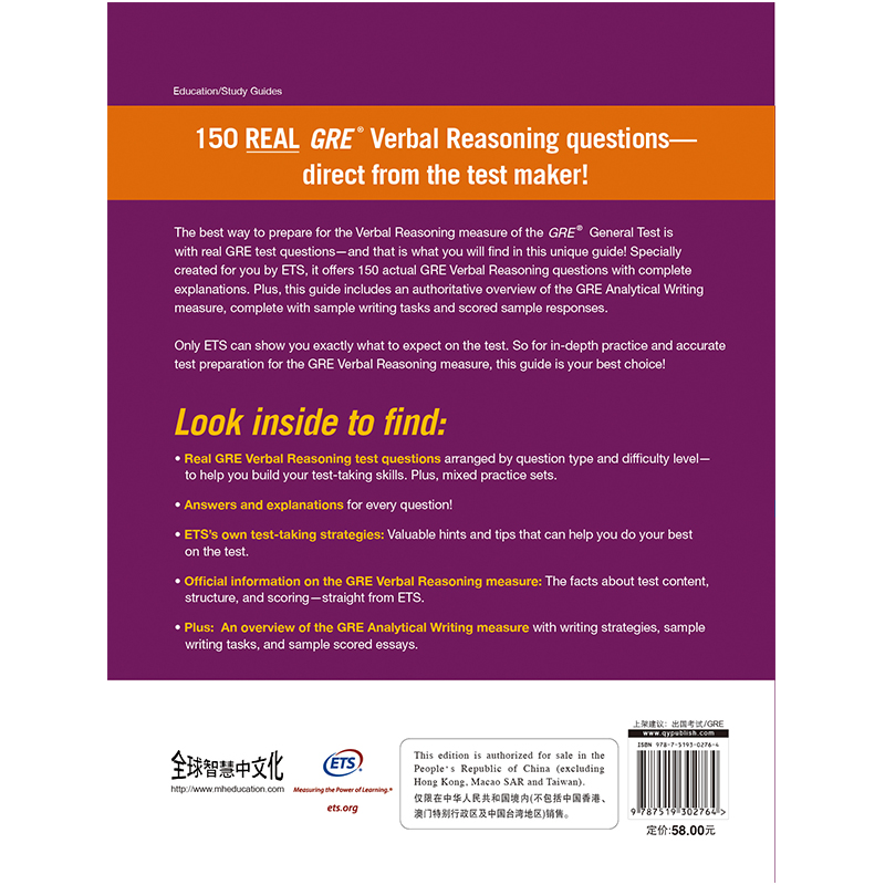 第2版 出国考试 书籍 新东方图书旗舰店 英语官网 GRE真题模拟题 GRE语文官方指南 ETS中国授权 美国报考研究生考试