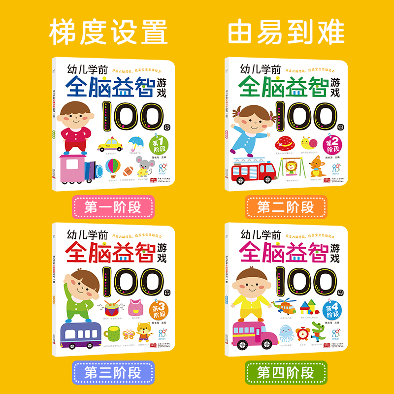 4个阶段全脑开发3 全4册 6岁幼儿智力亲子早教益智互动图画书脑潜能开发逻辑思维注意力 幼儿学前全脑益智游戏100图 海润阳光