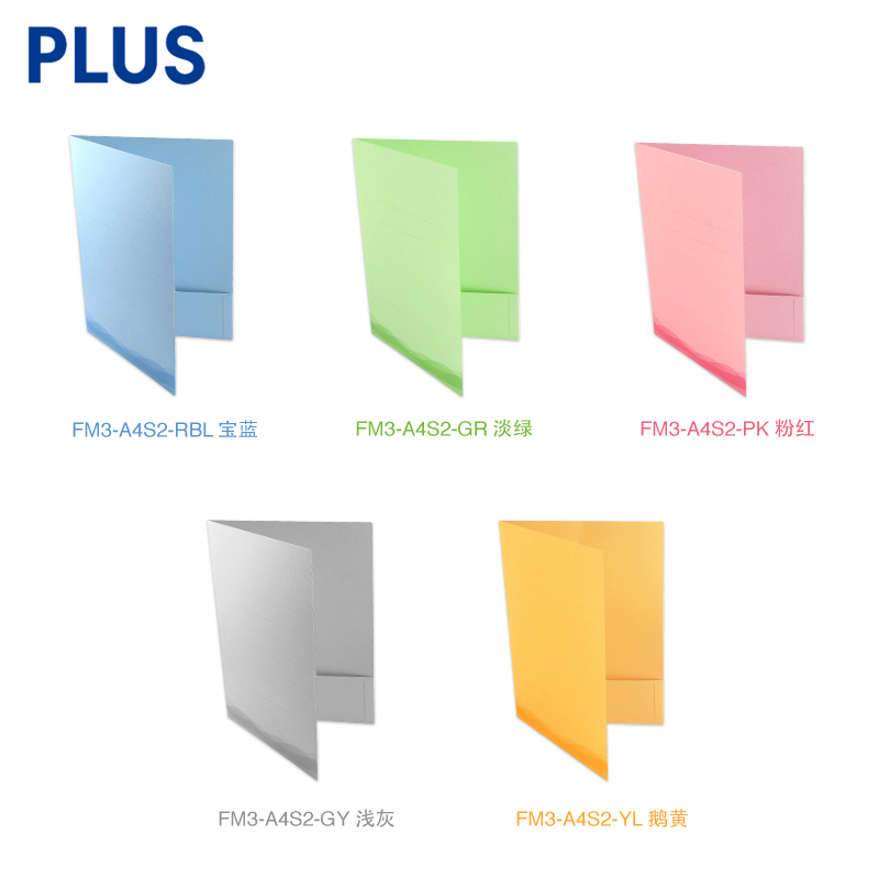 A4S2口袋式 PLUS普乐士FM3 封面夹彩色A4文件夹分类夹简历会议记录报告夹企划书纸板资料夹环保纸质 包邮 10个装