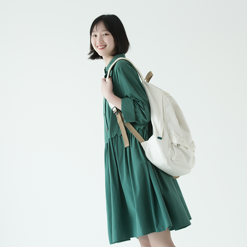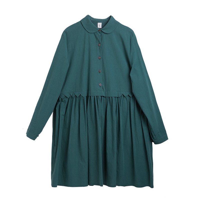 连衣裙女 a字中长款 SUIN2024春夏长袖 文艺学院宽松绿色棉长袖