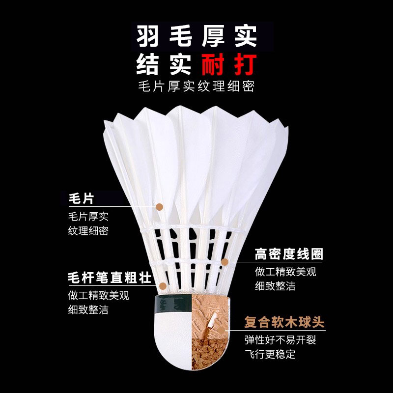 训练用球12只装 361度羽毛球耐打王正品 不易打烂鸭毛室外比赛套装