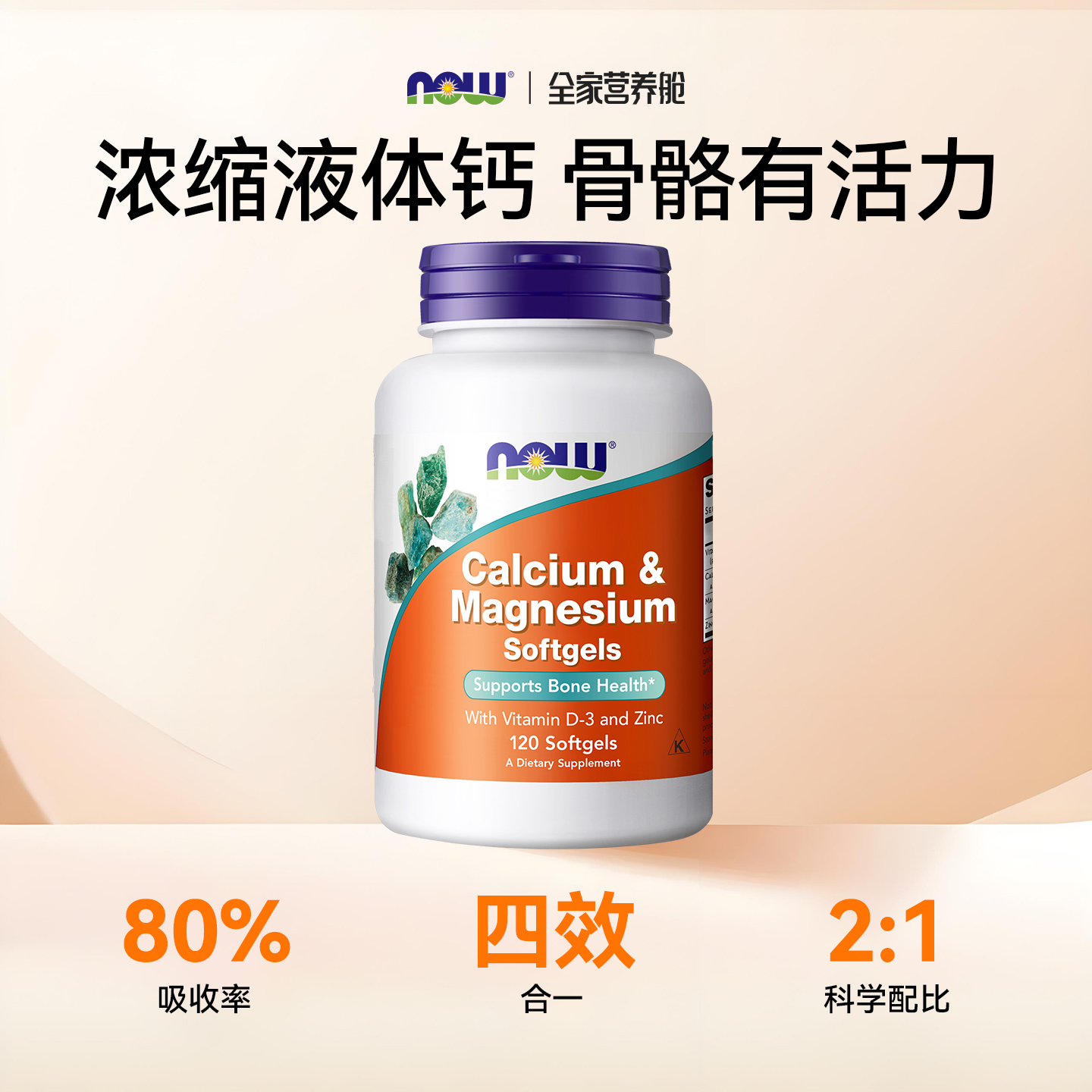 NOW诺奥高钙片复合钙镁锌维生素D液体钙碳酸钙软胶囊美国进口成人