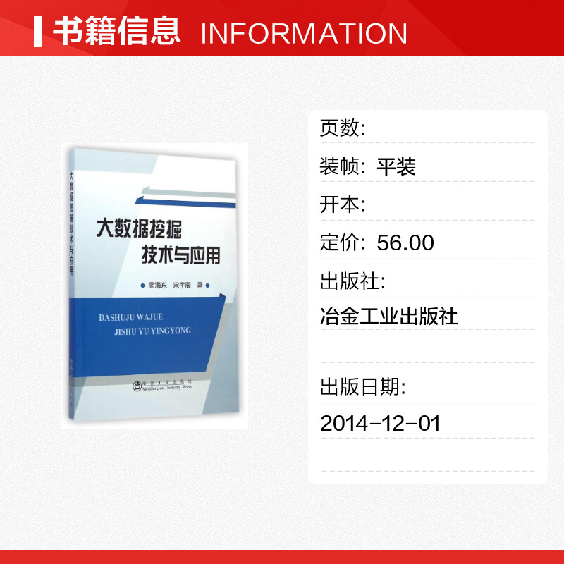 图书籍 社 著作 新 专业科技 计算机软件工程 宋宇辰 著 冶金工业出版 大数据挖掘技术与应用 新华书店正版 孟海东