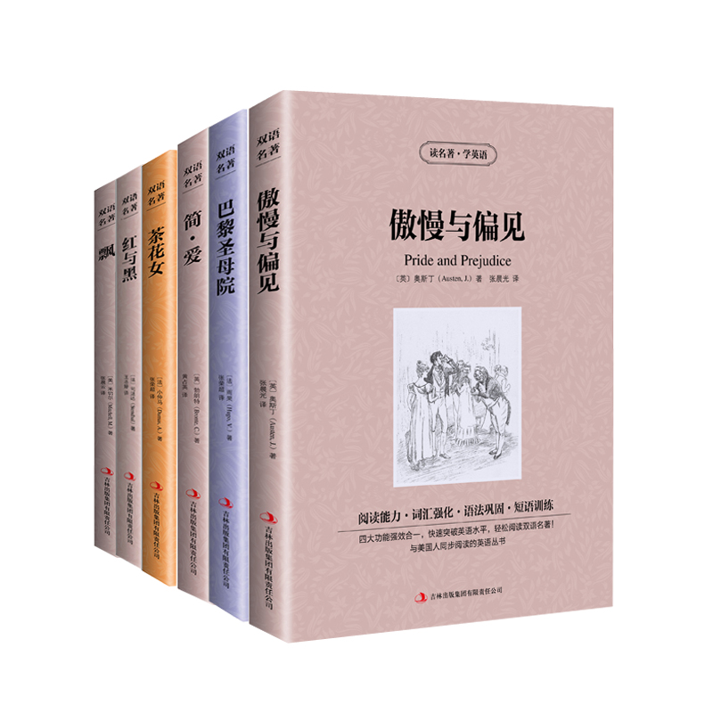 书世界名著书籍 原著中英文对照英汉互译完整版 6本双语阅读傲慢与偏见简爱巴黎圣母院雨果飘茶花女小仲马红与黑中文版 英文原版
