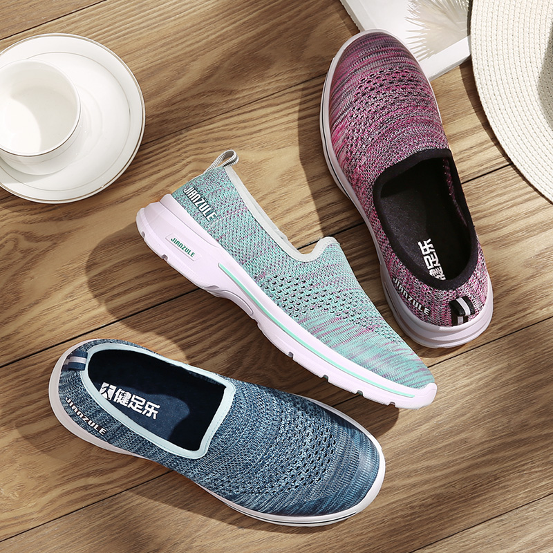 网面软底 运动鞋 斯凯奇男女健步鞋 子一脚蹬易穿脱女舒适透气老人鞋