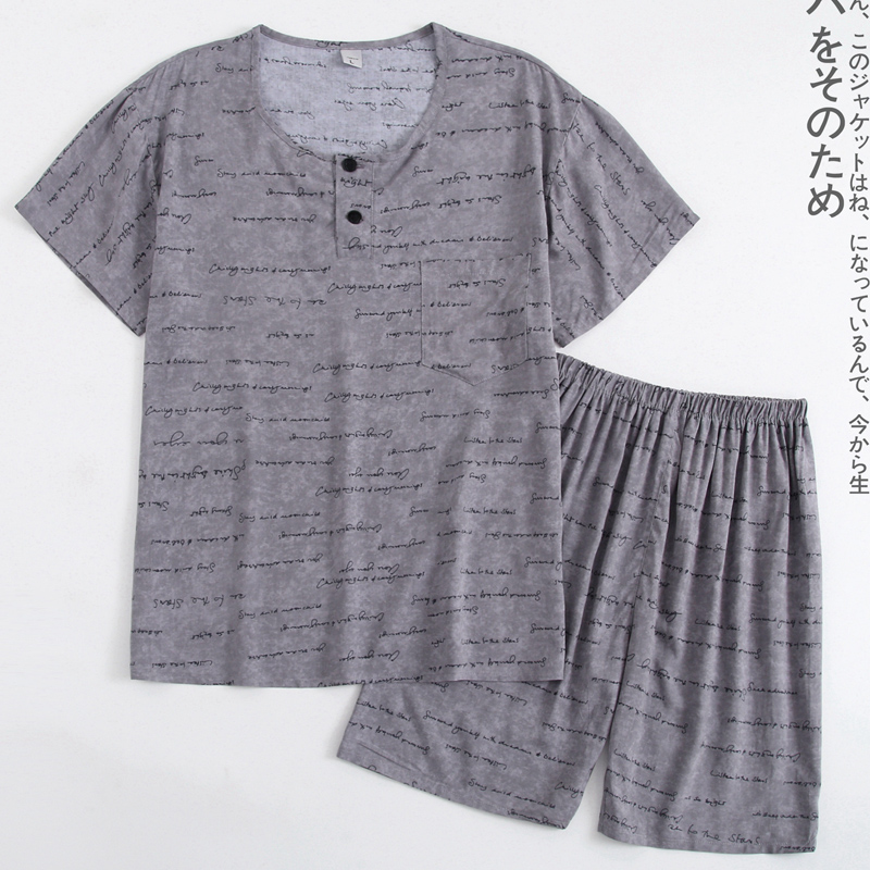 圆领套装 青少年男士 短裤 睡衣短袖 人造棉绵绸家居服 夏棉绸宽松薄款