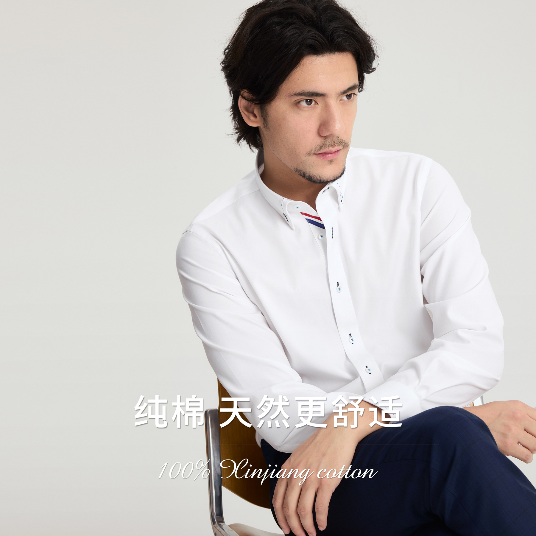纯色衬衣春季 内搭 衬衫 潮流拼接时尚 长袖 商务韩版 男式 白衬衫 修身