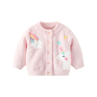 韩系英文刺绣毛针织外套上衣女装 秋季 509086 2025新款 三福毛衣开衫