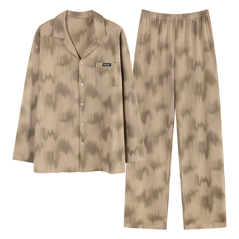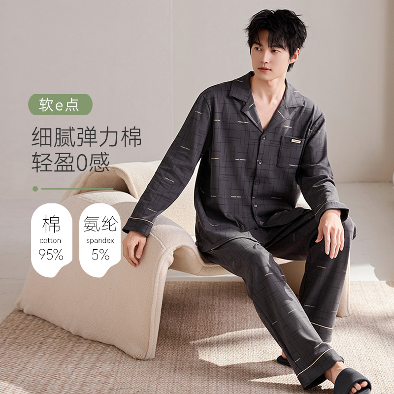 长袖 可外穿家居服套装 开衫 新款 男 纯色全棉秋冬季 雅鹿纯棉睡衣男士