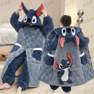 保暖套装 熊猫睡衣加绒加厚款 男童浴袍 冬季 男孩睡袍三层夹棉父子装