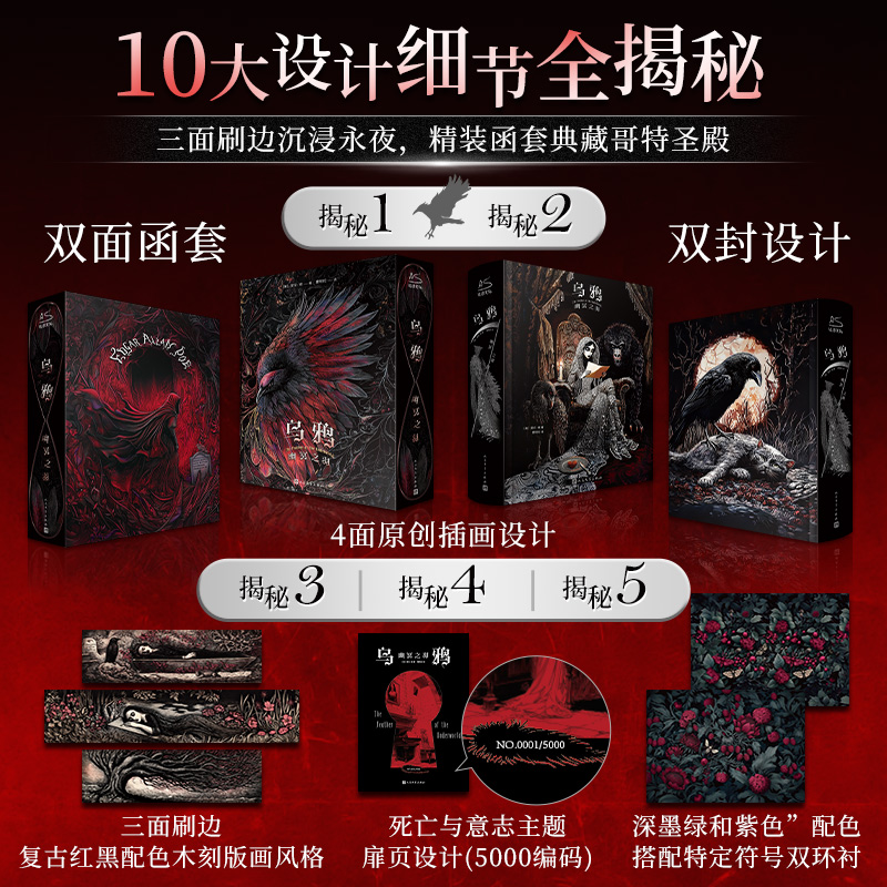 爱伦·坡简体中文版 推理悬疑侦探小说书籍正版 折页 幽冥之羽 特装 乌鸦 赠光栅卡 藏书票 收录70篇小说 典藏插图版 刷边版