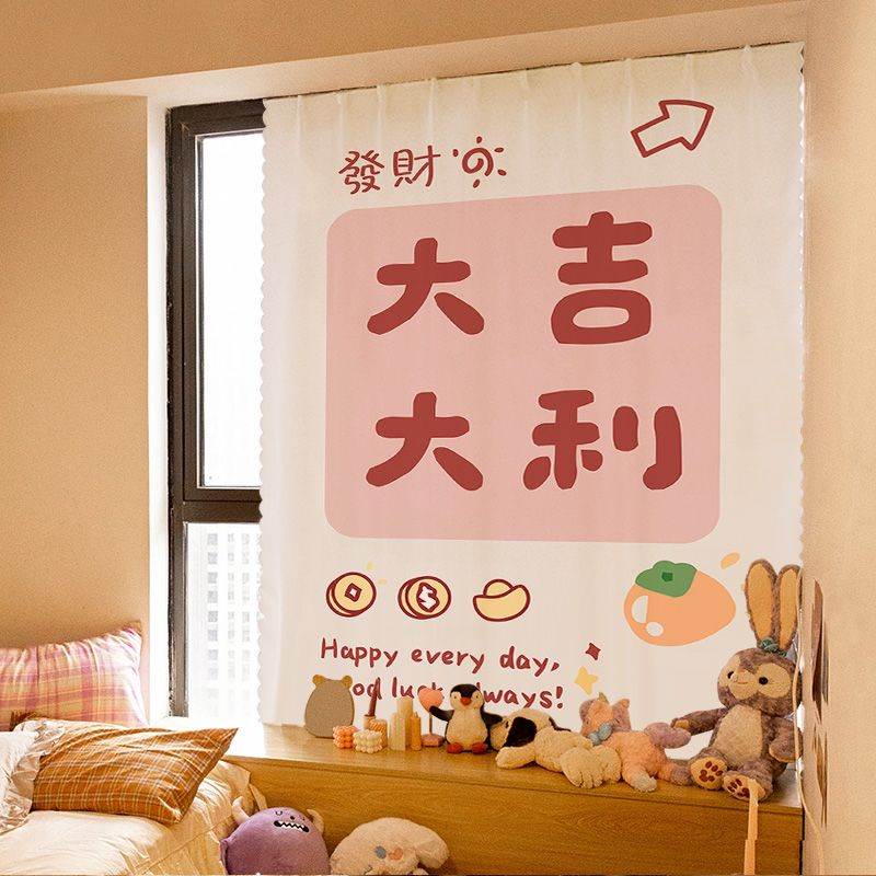好运全遮阳光简易 卧室少女粘贴式 ins新款 魔术贴窗帘布免打孔安装