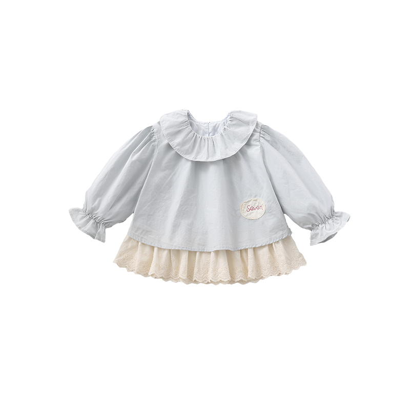 荷叶边圆领上衣女宝宝衬衣 儿童衬衫 Elfairy女童秋装 小清新娃娃衫
