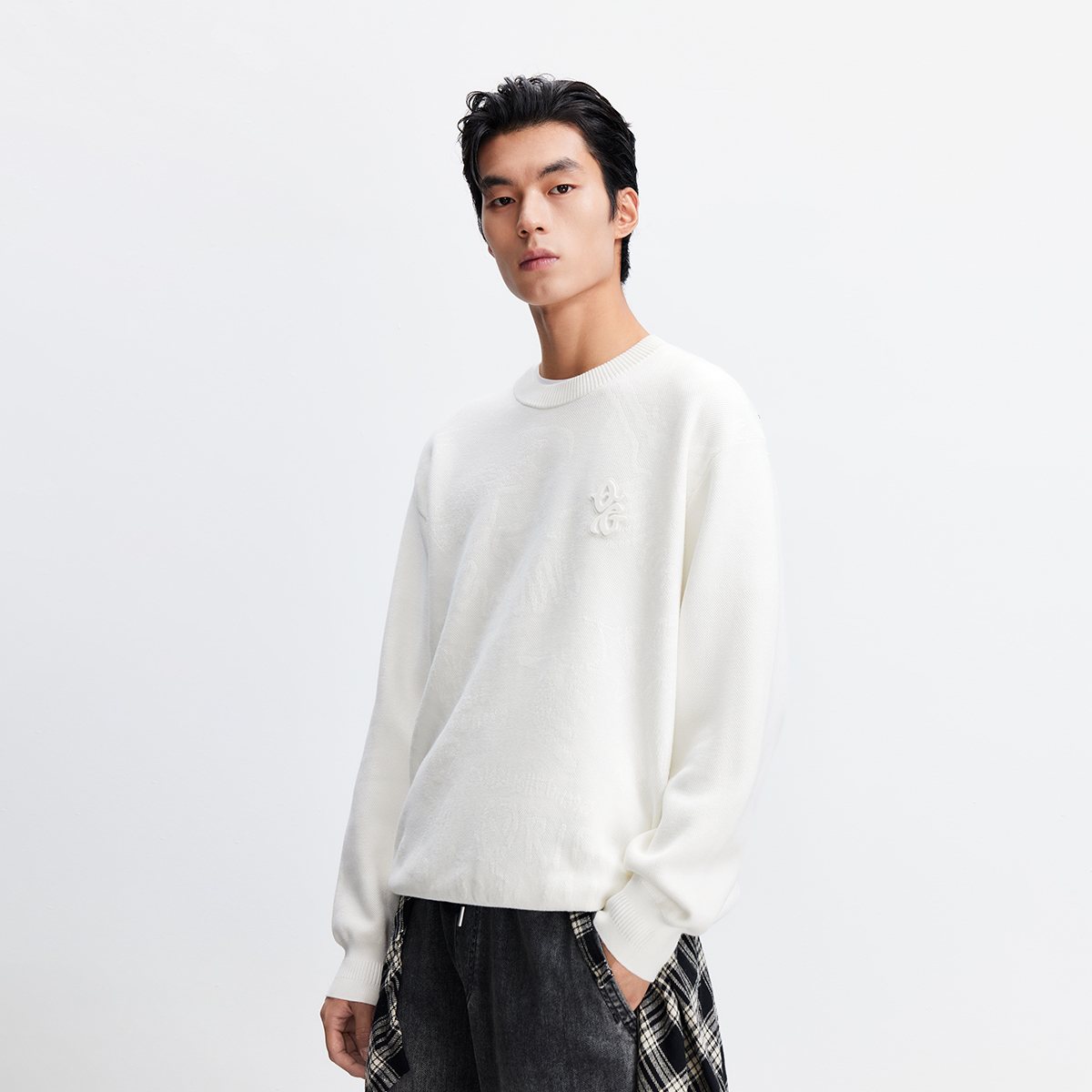 圆领肌理感绞花毛衣保暖针织衫 Hazzys哈吉斯男士 上衣 双11预售