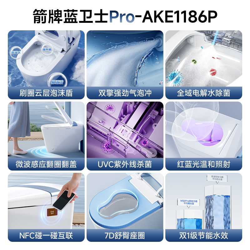 箭牌蓝卫士Pro刷圈泡沫盾智能马桶家用全自动坐便器 重磅新品
