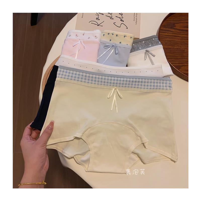 头a 女A类婴儿棉抑菌裆加长档包臀碎花高腰平角裤 猫人大码 纯棉内裤