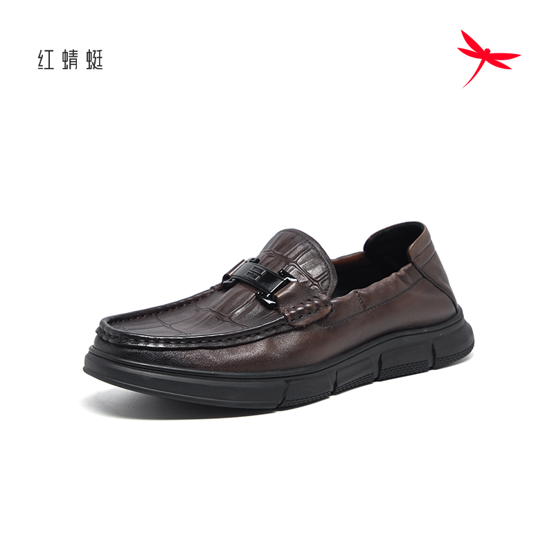 软底豆豆鞋 乐福鞋 一脚蹬A4200672 皮鞋 红蜻蜓真皮男士