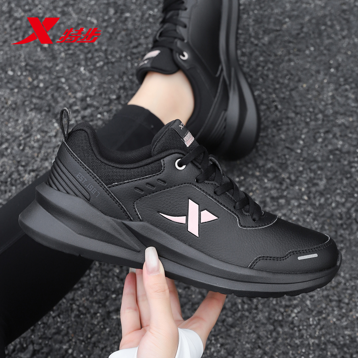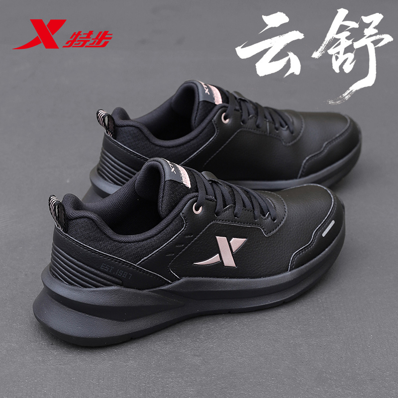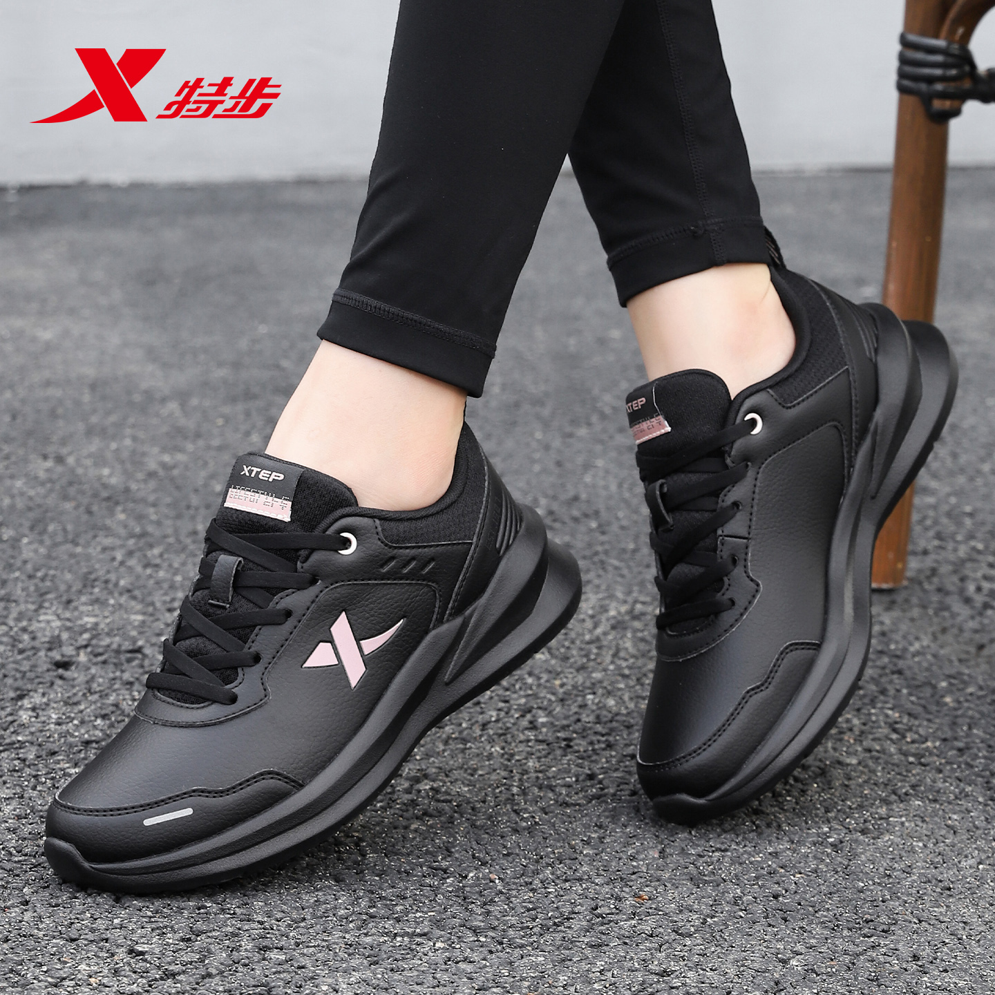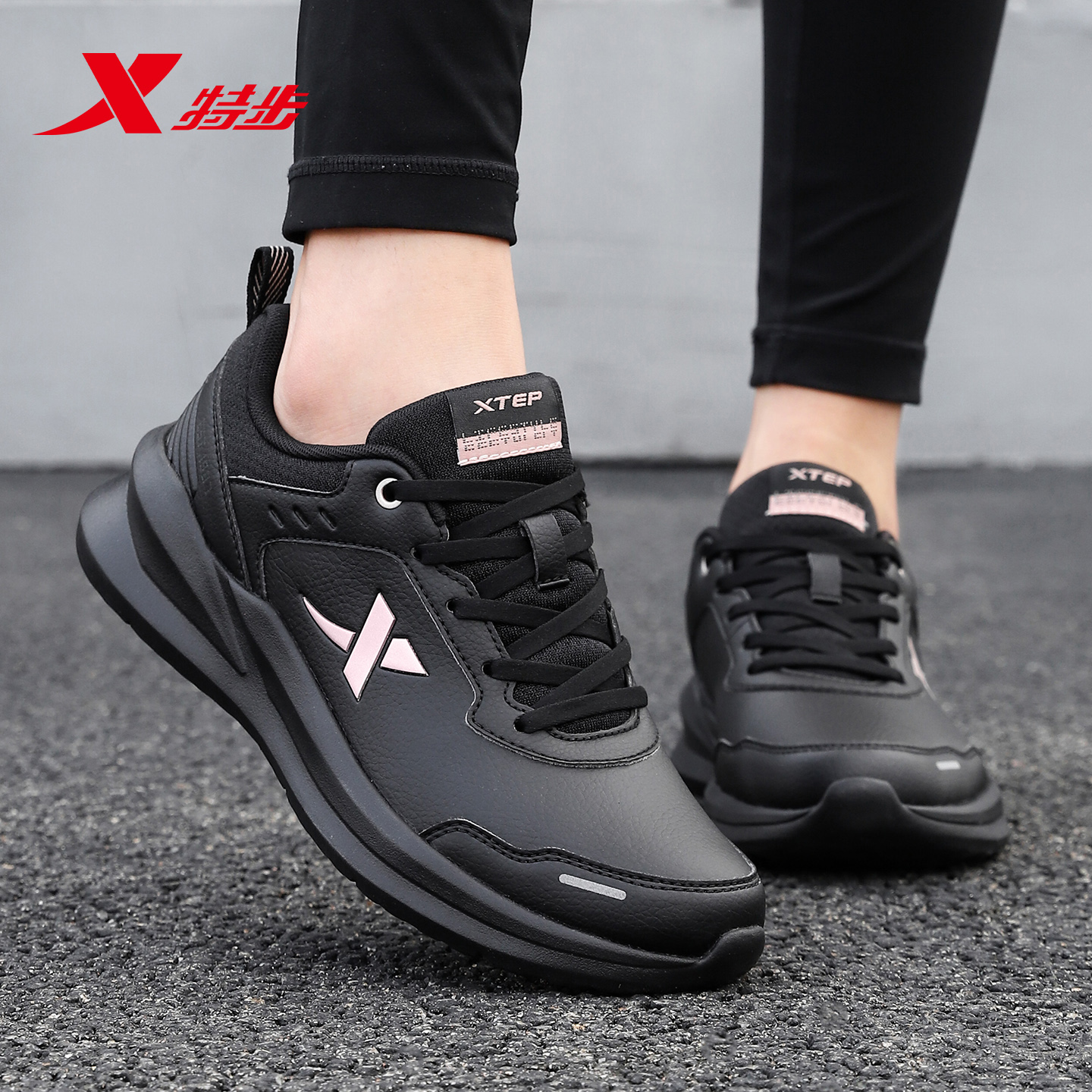 跑步鞋 皮面防泼水软底休闲跑鞋 女鞋 减震运动鞋 秋新款 特步波浪鞋