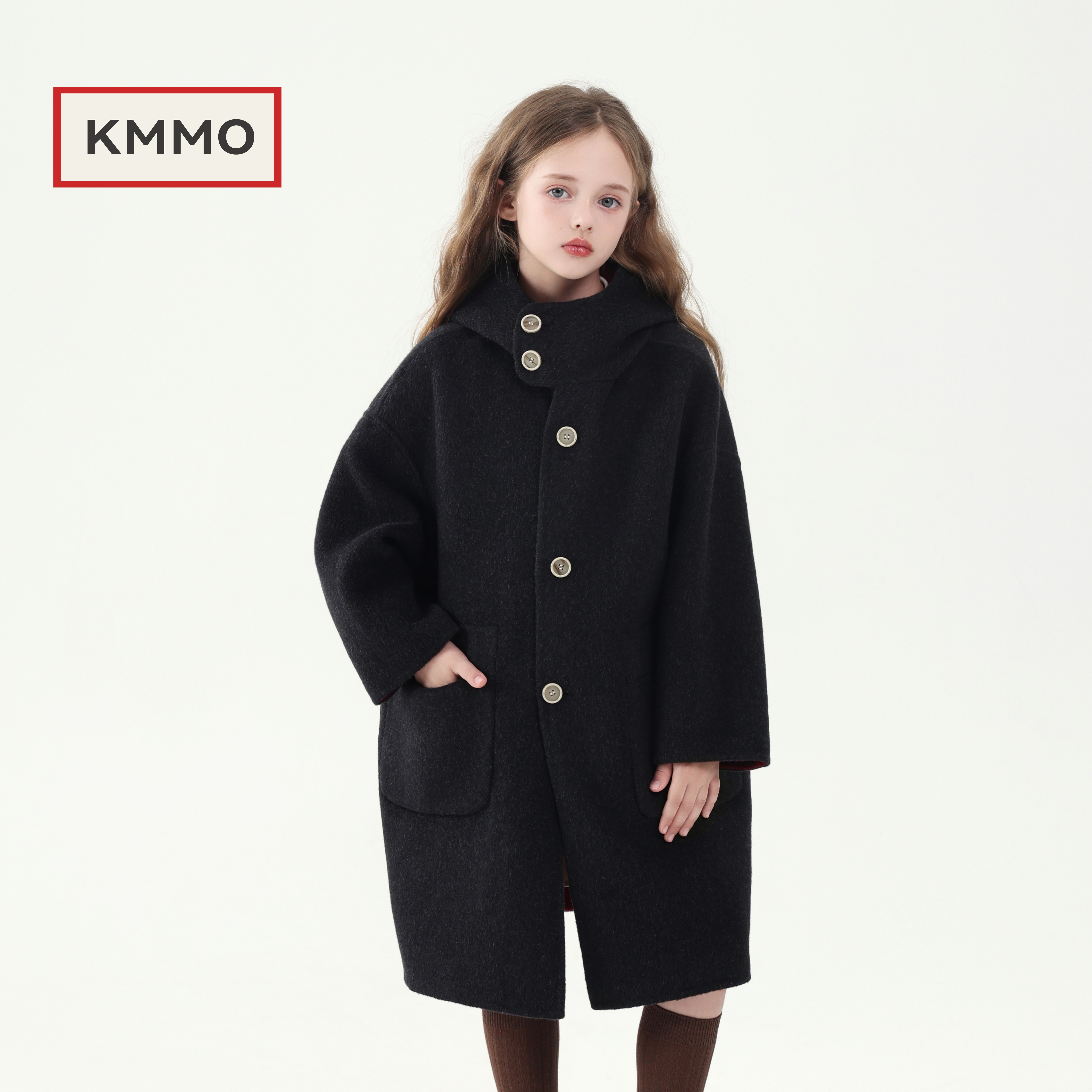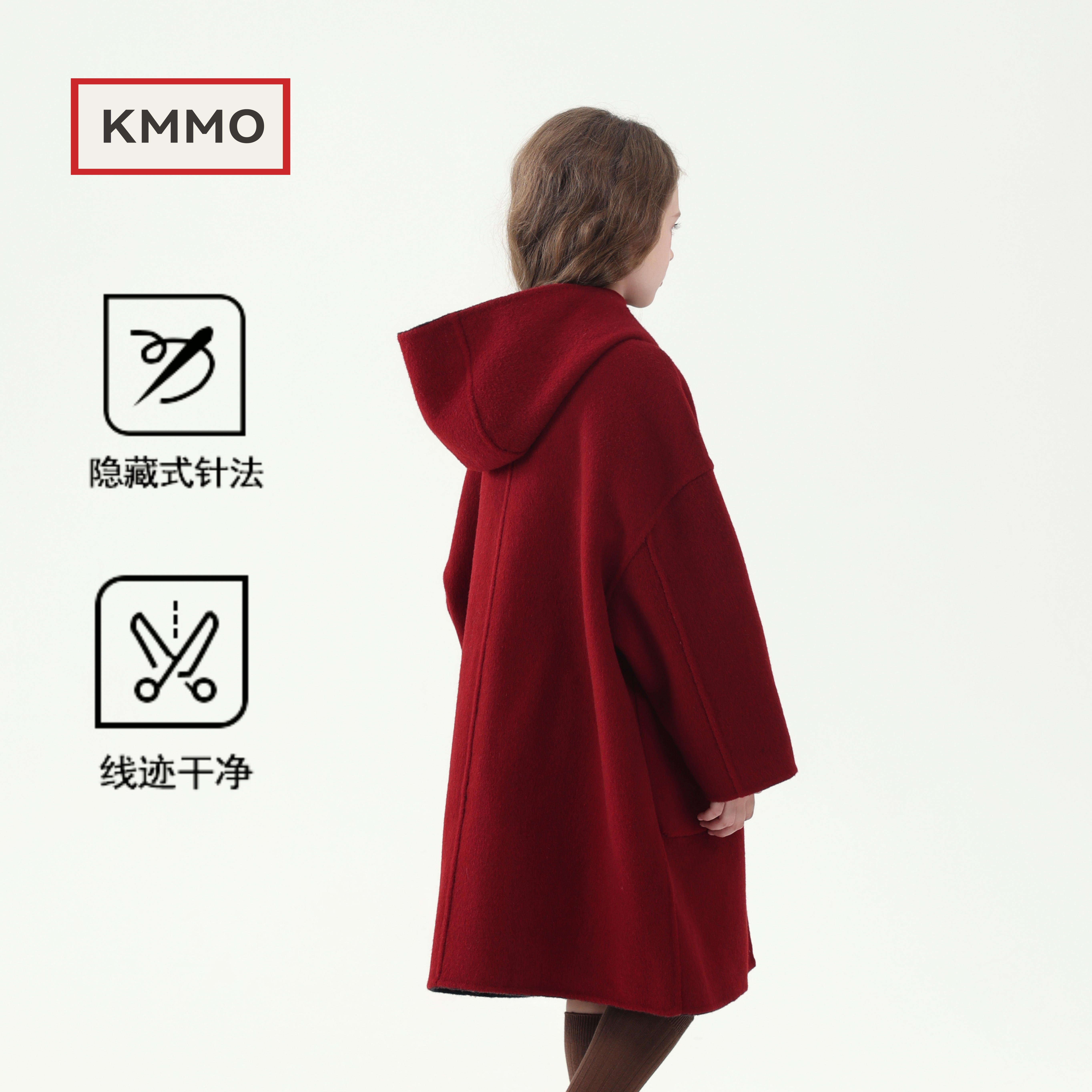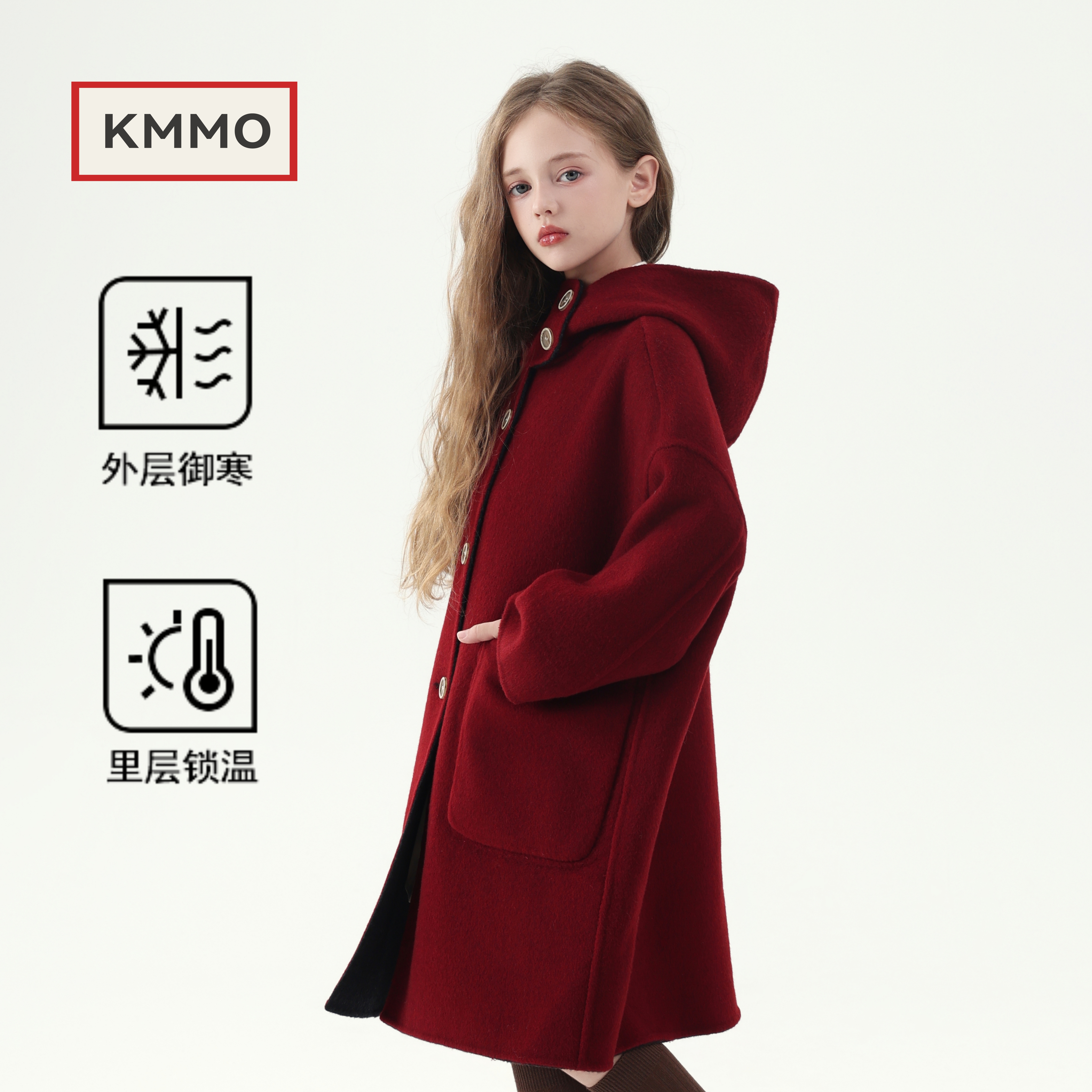 KMMO女童大衣红色2025新款 儿童拜年服呢子外套本命年双面羊绒 冬季