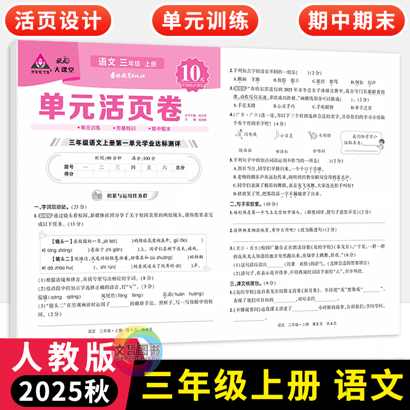 成才路状元 期中期末试卷 大课堂单元 小学123456年级上册语文单元 活页易撕设计 活页卷一二三四五六年级上册语文人教版 2025秋状元