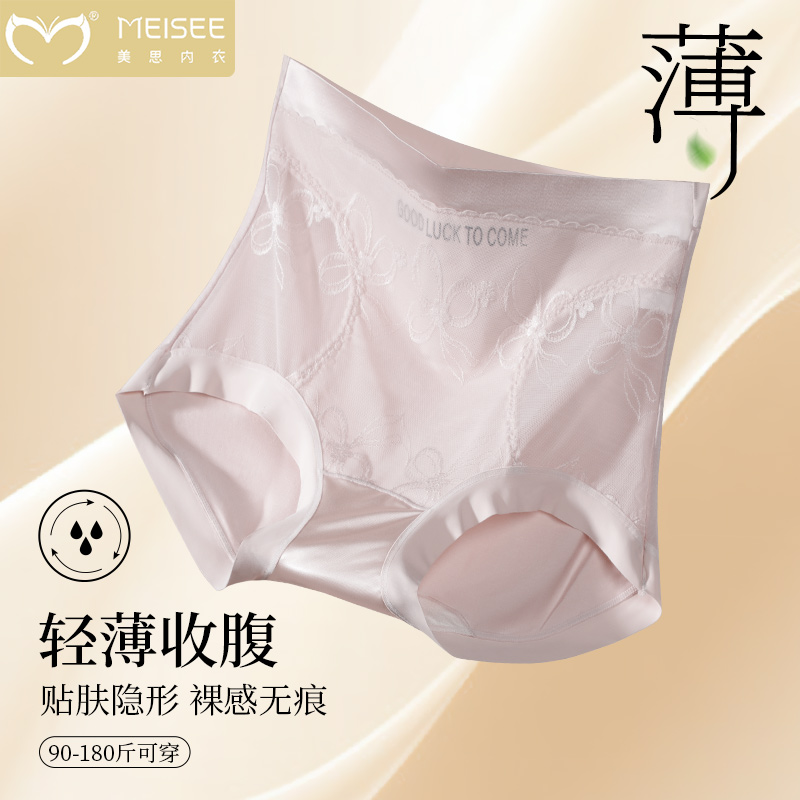 女士三角短裤 美思冰丝内裤 薄款 三角裤 女高腰收腹提臀抗菌无痕大码