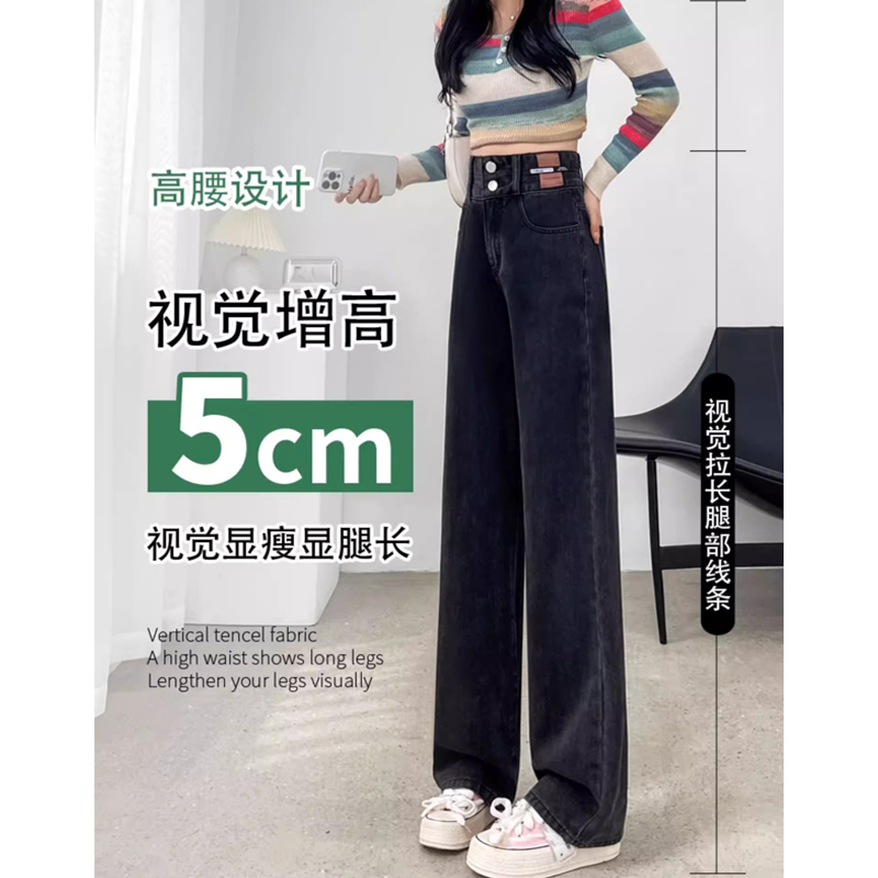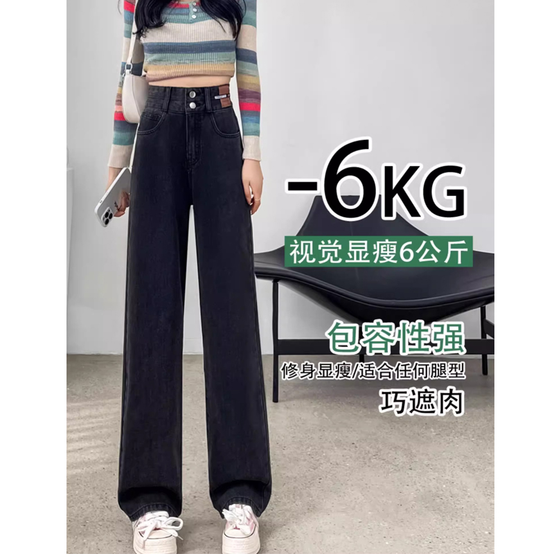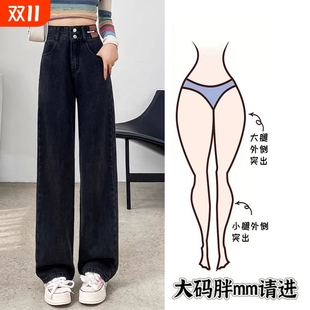 阔腿直筒裤 春秋大码 宽松窄版 女高腰2025年新款 子 胖mm复古牛仔裤