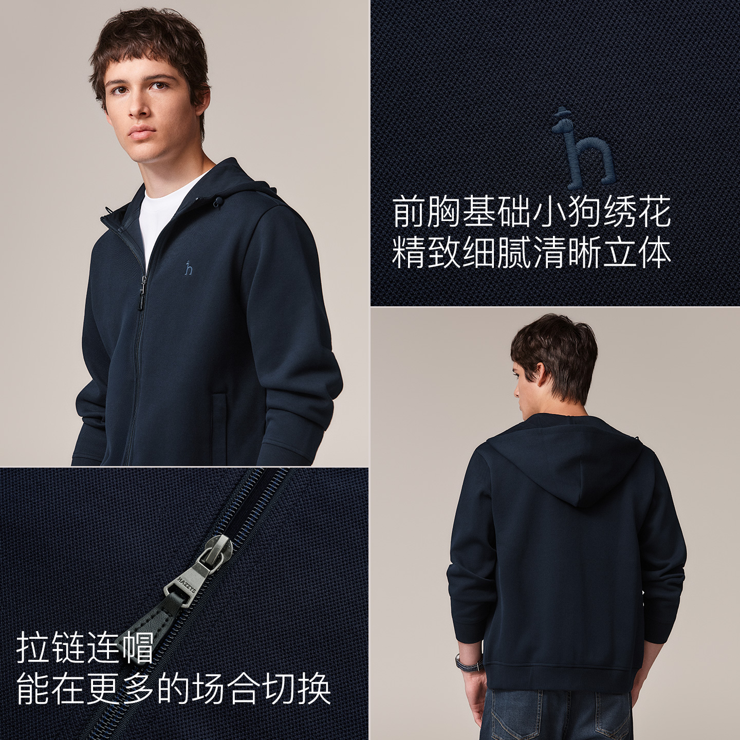 珠地刺绣时尚 海澜之家山不在高25秋冬新款 卫衣上衣男 加绒可选