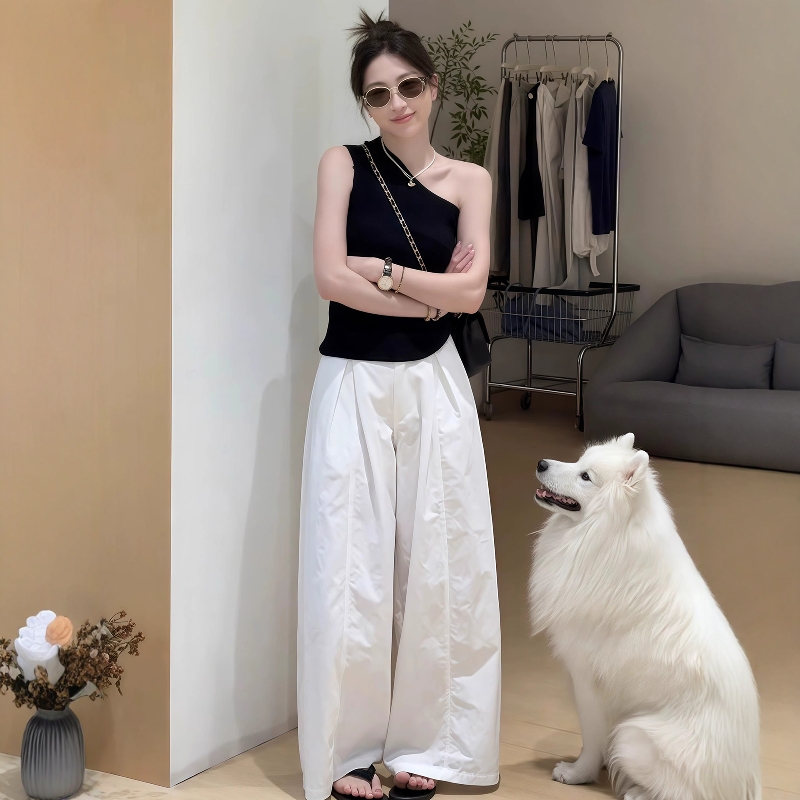 新款 女秋季 韩版 宽松纸袋裤 休闲时尚 高腰显瘦直筒长裤 卡其色阔腿裤