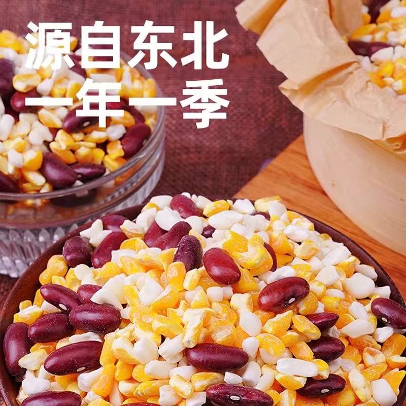 东北大碴子粥原料新鲜正宗粘黏笨玉米碴芸豆组合粥农家杂粮早餐饭