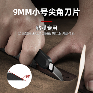 得力黑刃美工刀钨钢黑科技小型裁纸刀拆快递小刀壁纸刀工业级不锈钢刀身合金刀片30度雕刻刀开箱刀美术生专用