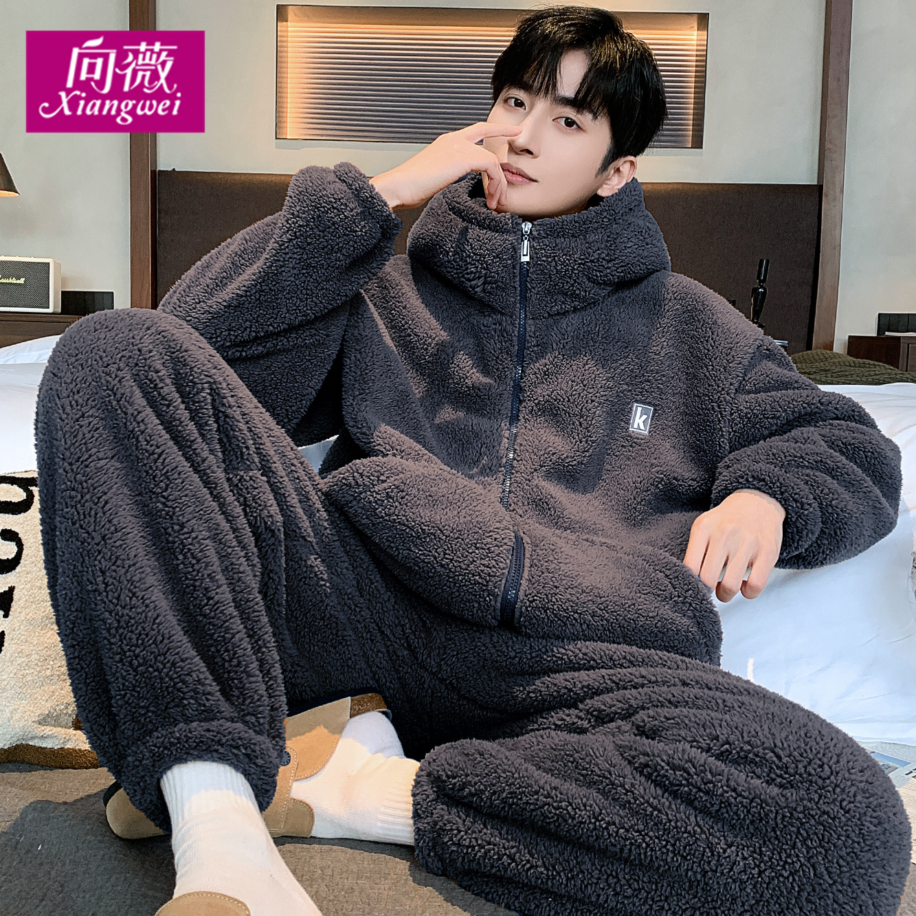 冬天套装 男士 珊瑚绒加厚加绒法兰绒卡通家居服男款 冬季 睡衣秋冬款