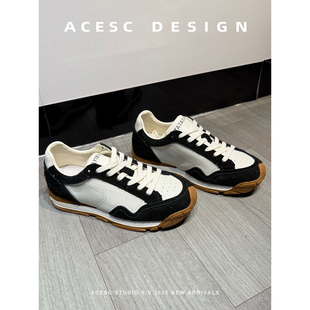 女2025秋季 真皮休闲女鞋 新款 百搭阿甘鞋 流浪徒步运动鞋 厚底德训鞋