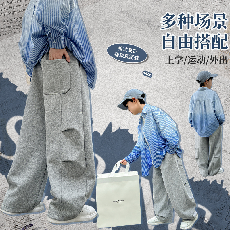 加绒街舞穿搭褶皱宽松休闲长裤 女秋冬季 子 灰色运动卫裤 自然涩美式