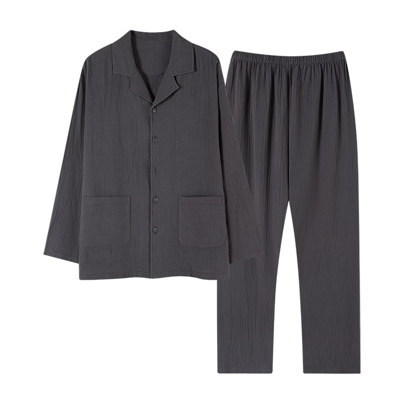 大码 长袖 长裤 猫人纯棉睡衣男士 家居服套装 2025新款 纯色男士 春秋款